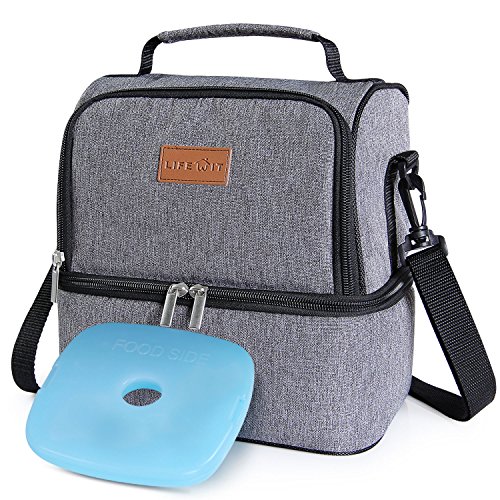 Cuenta con dos niveles para almacenar los alimentos por separado y dos cierres con cremalleras para mantener los alimentos protegidos. El nivel superior tiene una altura de 13,5 cm y la parte inferior mide 11 cm, en este sentido, sus dimensiones totales son de 23 x 15 x 25 cm para ofrecer una capacidad de almacenamiento de 7 L.