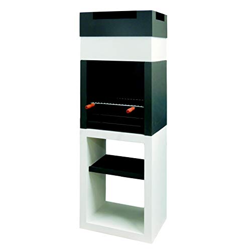 Esta barbacoa de obra cuenta con zonas intercaladas de color blanco y negro, siendo bastante imponente en el hogar. Sus medidas son de 60 x 45 x 174 centímetros y, al montarse, alcanza un peso total de 307 kilogramos.