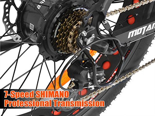 Esta bicicleta eléctrica de la marca Addmotor es de color negro, aunque también está disponible en naranja. Es una opción ideal para adultos y, de hecho, puede soportar hasta alrededor de 136 kg de peso. Cuenta con un motor de 500W y una batería de litio de 48V, dos elementos que permiten al usuario ascender cómodamente cualquier cuesta o calle empinada.