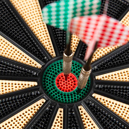 Ventaja principal: Esta diana de diseño tradicional cuenta con un tamaño estándar y una buena construcción, lo que facilita mejorar tu rendimiento. También se incluyen dos prácticas puertas, que se cierran sobre la zona de contacto cuando no estés jugando y mantienen la diana protegida del polvo.