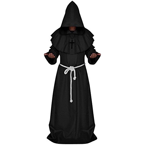 Este modelo de monje estilo medieval puede ser para algunos usuarios el mejor disfraz para carnaval o Halloween, pues es práctico y sencillo pero muy completo, puesto que viene con todos los detalles característicos.