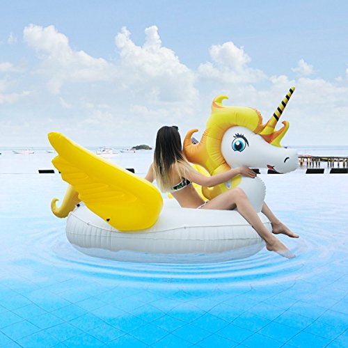 Diseño: Si quieres invertir en un flotador hinchable que sea llamativo y de gran tamaño, considera el modelo de HooYL. Este flotador tiene forma de unicornio alado y sus colores y forma llamarán la atención de todos en la playa o la piscina.