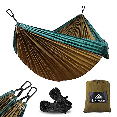 En el caso de este modelo de NatureFun, destacamos que está elaborada en tela de nylon para paracaídas de grado militar de 210T, con triple costura, muy fuerte y resistente, capaz de soportar hasta 300 kg de peso, por lo que pueden dormir en ella dos personas de peso promedio de forma cómoda y segura, gracias a su tamaño de 275 x 140 cm.