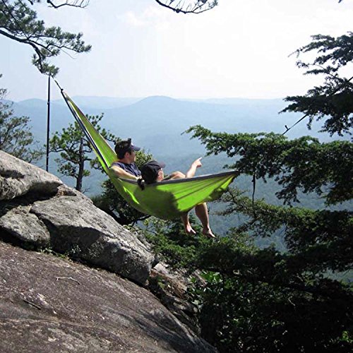 Si el precio bajo es una característica que te lleva a comprar y estás en busca de la mejor hamaca de camping de relación calidad precio, entonces este es el modelo para ti, porque se trata del más barato de nuestra selección. Está fabricado en tela nylon de paracaídas 210T, un material que es liviano y resistente, además de ser a prueba de moho, transpirable y con costuras de triple aguja para el refuerzo. Su peso es de 499 gramos.