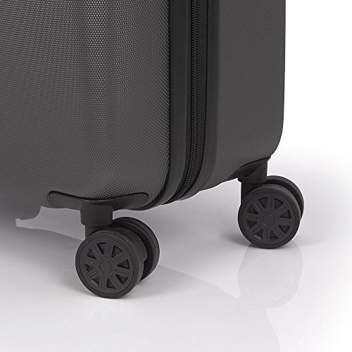 Esta maleta de cabina tiene unas dimensiones de 40 x 20 x 55 centímetros, las cuales son las indicadas como equipaje de mano para compañías como Ryanair y Vueling. Está fabricada en Acrilonitrilo Butadieno Estireno ABS de color gris, el cual es un material plástico muy fuerte y de alta durabilidad. Tiene un peso de 2.60 kilogramos.