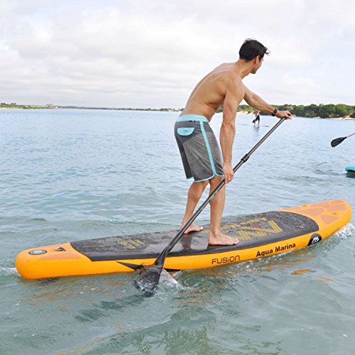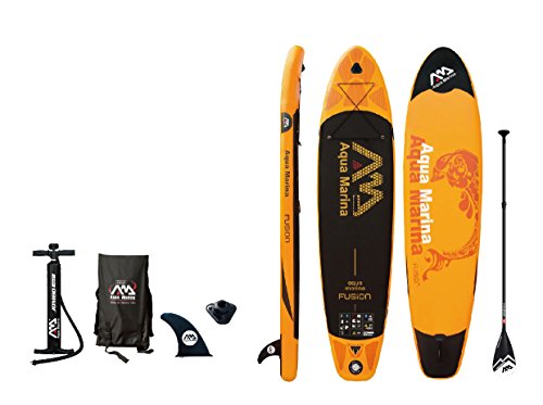 Esta tabla de paddle surf de la marca Aqua Marina llama la atención por su diseño hexagonal moderno y vistoso. Es de color naranja, si bien tiene algunos detalles en color negro. Por su aspecto, parece una tabla de lo más profesional.