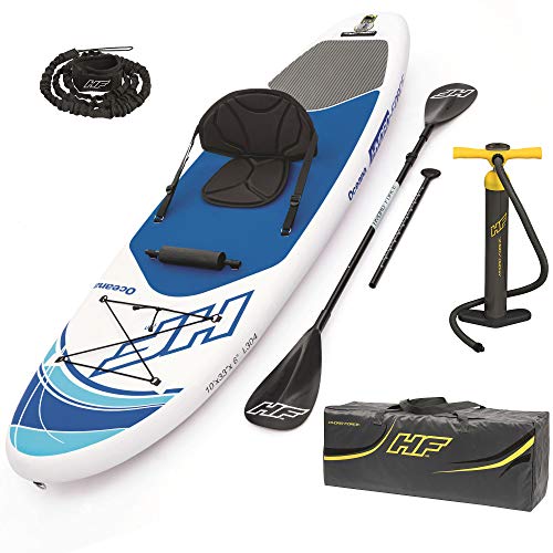 Esta tabla es bastante versátil, ya que mide 305 x 84 x 12 cm y puede ser usada tanto para paddle surf como kayak. Esto último es posible gracias a que el paquete incluye un asiento desmontable y ajustable. Además, el remo es de aluminio y trae una pala extra para cuando vayas a utilizar la tabla como un kayak.