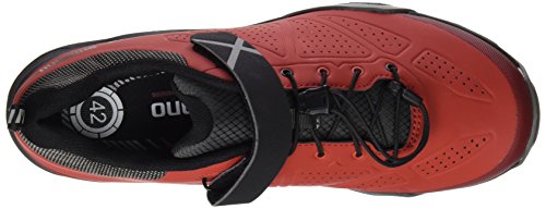 Otras zapatillas con diseño atractivo y moderno son estas Shimano de color rojo, que además son unas de las más baratas de la lista y son adecuadas para utilizar en cualquier temporada, ya que han sido diseñadas para que te sientas cómodo al utilizarlas. La suela es de goma EVA, que ofrece un apropiado nivel de soporte al pie mientras caminas y pedaleas.