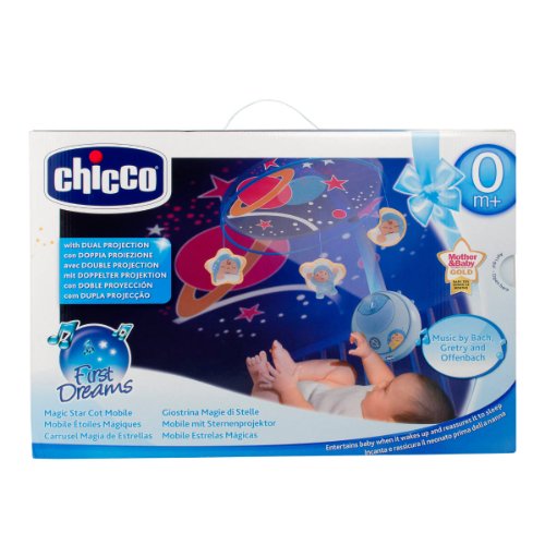 Si te preguntas cuál es el mejor carrusel para cuna para tu bebé, la respuesta puede ser el móvil Estrellas Mágicas de Chicco, un producto que además de la calidad y respaldo ofrecido por la marca, cuenta con un sistema único de doble proyección de planetas y estrellas que se muestran en la tela del mismo carrusel y en el techo de la habitación del bebé.