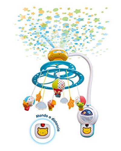 Se trata de un móvil de cuna que cuenta con proyector de luz y suaves melodías musicales para estimular al bebé y favorecer a su sano desarrollo.