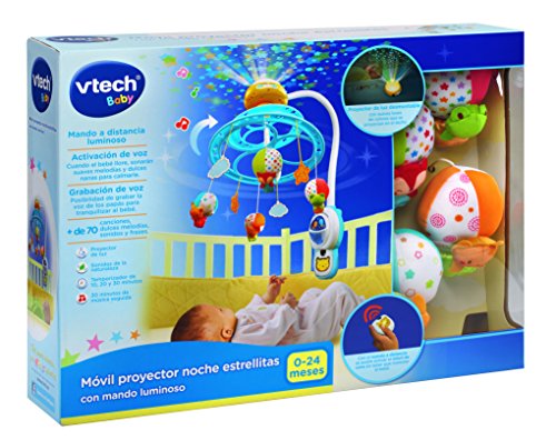 Otra buena opción para la cuna del bebé es el móvil VTech Noche Estrellitas, porque cuenta con una buena estructura de plástico que le aporta robustez, con un diseño práctico e infantil, además, ofrece una amplia durabilidad y es resistente a golpes y tirones, por lo que es considerado por muchos como el mejor carrusel para cuna.