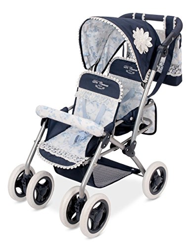 Una silla que se destaca entre otras por su diseño elegante, pero sin dejar de ser infantil, es el que nos presenta Decuevas Toys. Su modelo Classic Romantic tiene, entre otros detalles, un ribete decorativo de encaje en todo el contorno de su capota, asientos y respaldos. Además, también puede apreciarse una flor elaborada con el mismo material de encaje, que adorna el lateral superior de la capota para darle mayor realce. Para complementar el diseño y agregar encanto, los asientos, así como el acolchado frontal están confeccionados en una tela estampada con delicados motivos florales en color azul.