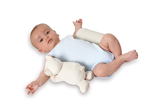Este cojín antivuelco permite que tu bebé permanezca acostado cómodamente sobre el costado o sobre la espalda, impidiendo que se gire boca abajo. Está formado por un cilindro largo, cosido firmemente a una extensión de tela, y otro cilindro pequeño desmontable, que se une a dicha superficie con velcro. Puedes desplazar el cilindro pequeño a la distancia que prefieras, ajustando el espacio entre ambos cilindros entre 10 y 30 cm de separación, para que tu pequeño tenga un espacio conforme a su tamaño.