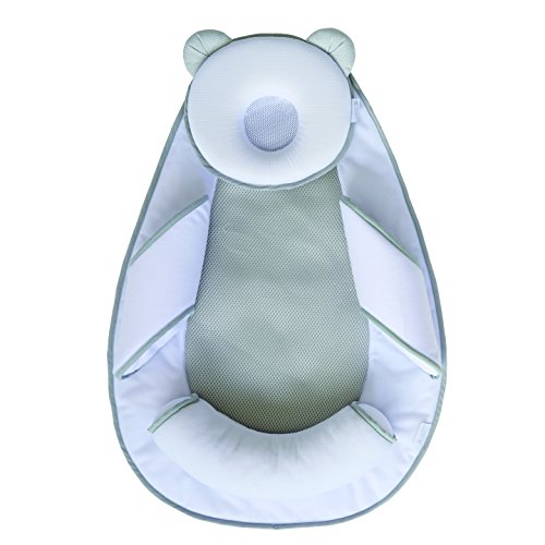El modelo destaca por su diseño, que semeja la forma de oso, con soportes colocados en zonas estratégicas como la cabeza y extremidades, logrando que el bebé se mantenga boca arriba en una posición estable, cómoda y segura.