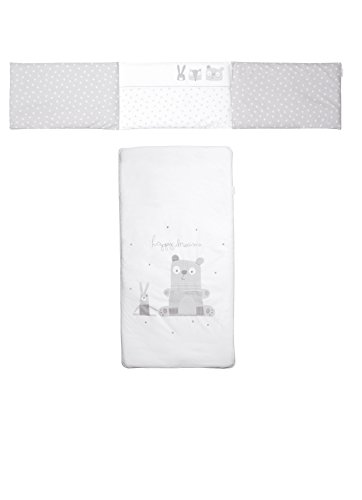 Este juego es muy completo, contando tanto con la colcha para la cuna como con el protector correspondiente, de modo que no necesitarás comprar nada más para vestir completamente la cuna de tu pequeño.