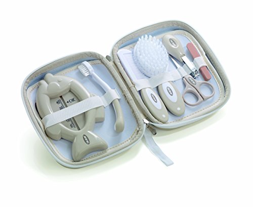 Dispone de un cortauñas diseñado para las delicadas uñas de un niño, incluso puede ser utilizado en un recién nacido. También cuenta con un juego de limas, suaves y pensadas para la piel de un bebé; el cepillo y el peine ofrecen una caricia en su cabecita y la tijera, junto con cepillo dental, conforman otra parte importante del equipo.