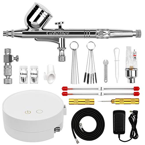 Si quieres iniciarte con todo en la aerografía sin tener que comprar nada más, este kit es para ti. Sin embargo, también es cierto que es el más caro de nuestra lista.