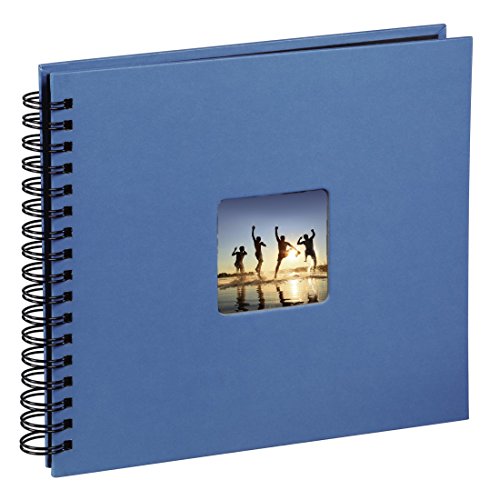 Con un formato ancho – alto de 28 x 24 centímetros encontrarás este álbum para fotos para pegar de la conocida casa fabricante Hama. Las tapas están diseñadas en cartón de tipo texturizado en color azul cielo y en el área del lomo están unidas por medio de un espiral negro, ofreciendo así una estética minimalista y con gran atractivo visual.