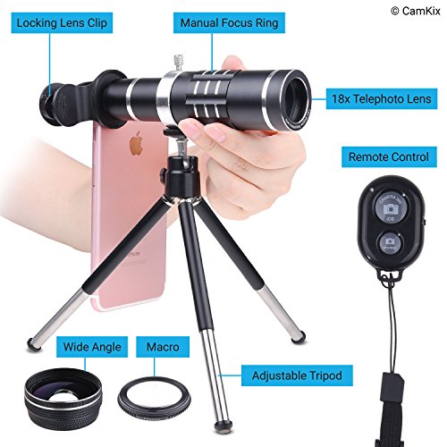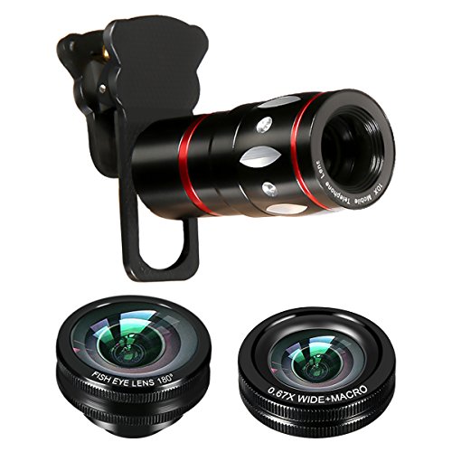 Este producto está compuesto por tres lentes: una lente angular que te permite abarcar mayor amplitud de la escena; una macro que muestra una imagen a nivel microscópico y el teleobjetivo 18x que sirve para la toma clara de objetos distantes y lograr buenos acercamientos sin distorsión de la imagen. Se destaca que todas las lentes están elaboradas en aluminio, por lo que es un producto altamente duradero.