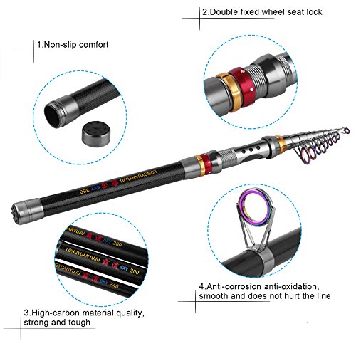 3. Tomshoo Caña de Pescar de Carbono Telescópica