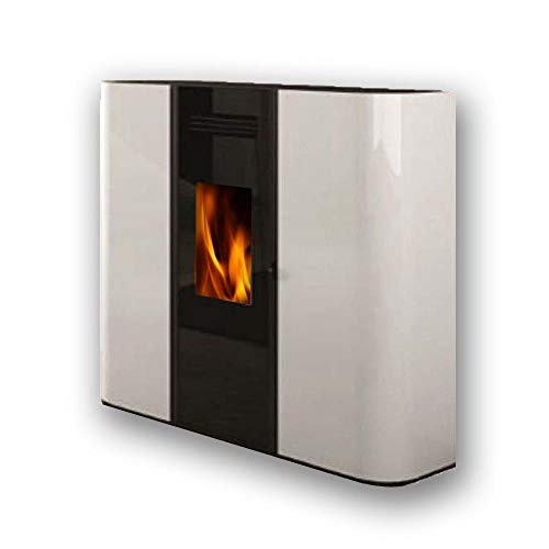 Se trata de una estufa de pellets compacta y fácil de instalar, ya que solo tiene 22 cm de profundidad. Además, cuenta con una estructura atractiva que incluye laterales de color blanco, por lo que puedes utilizarla para decorar el espacio.