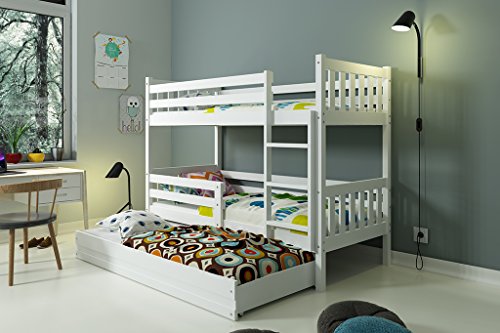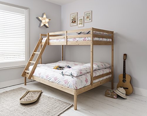 La ventaja más llamativa de esta litera de tres plazas es que puede ser convertida en dos camas individuales dependiendo de tus necesidades. Está fabricada con madera de buena calidad y tiene sistemas de seguridad especiales para evitar accidentes con niños.
