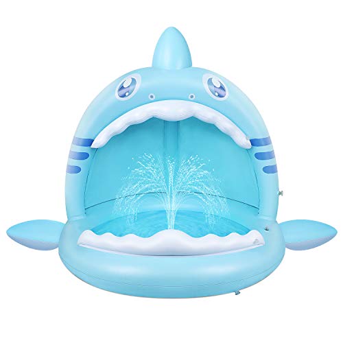 El diseño de tiburón, con toldo superior, permite hacer uso de la piscina de diversas maneras, tanto en interiores como en exteriores. Protege al bebé de los dañinos rayos solares, mientras el aspersor añade diversión al momento de jugar con agua.