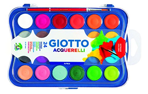 Se trata de una caja contentiva de 24 colores variados, en formato de pastillas con un diámetro de 3 cm, sus tonos son brillantes, opacos y vivos; a fin de que el niño pueda recrear todo lo que quiera y darle el matiz de su preferencia. La marca italiana Giotto se ha esmerado en crear estas pastillas duraderas, con un secado rápido y gran cobertura.