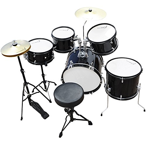 Para aquellos padres entusiastas que deseen ver a sus hijos tocando una batería real, pero más pequeña, este podría ser el instrumento adecuado. Se trata de una batería de 5 piezas, bombo, caja o tarola, granadero y dos toms, además del hit hat y crash, dos platillos imprescindibles.