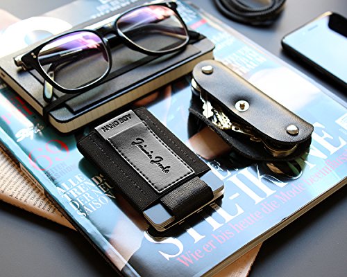 Su composición es muy simple, siendo una combinación entre un portatarjetas y un pequeño compartimiento especialmente pensado para guardar el dinero. Su material es elástico y cuero de alta calidad, con un cosido doble, lo que los usuarios han considerado como materiales resistentes y duraderos.