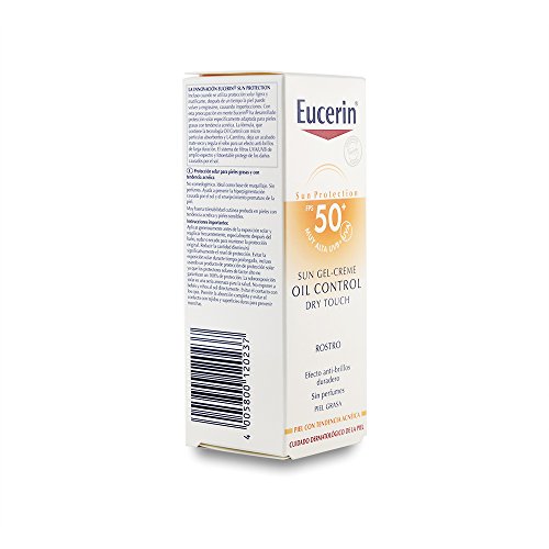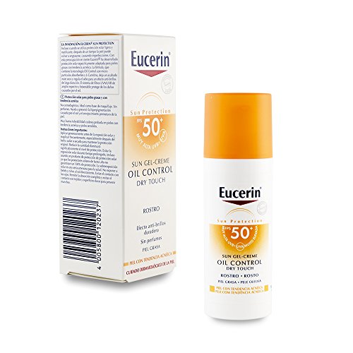 Después de revisar lo que este fabricante ofrece, nos decantamos por esta crema https://www.amazon.es/EUCERIN-Gel-Creme-Control-Touch-PFS50/dp/B01598S1OY/.