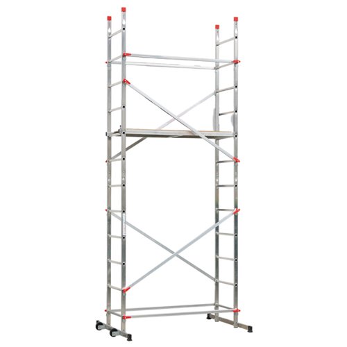 Se trata de una escalera andamio muy bien planteada para que cuando tengas que trabajar en sitios altos lo hagas sin complicaciones ni contratiempos. Te ofrece un par de ruedas que hacen sencillo el desplazamiento hasta el lugar en el que necesitas montarla. Además, gracias a que cuenta con un sistema de plegado y puedes separarla en secciones, es muy versátil. Así podrás con facilidad encontrar el ensamble más adecuado para cada tipo de proyecto.