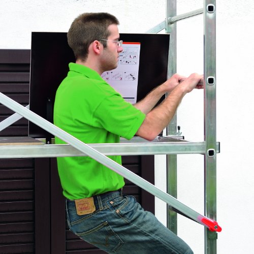En el caso de andamio además puede sujetarse cualquier escalón o escalera si lo necesites. La fabricación del producto en aluminio de alta calidad garantiza la plena seguridad de funcionamiento del producto.