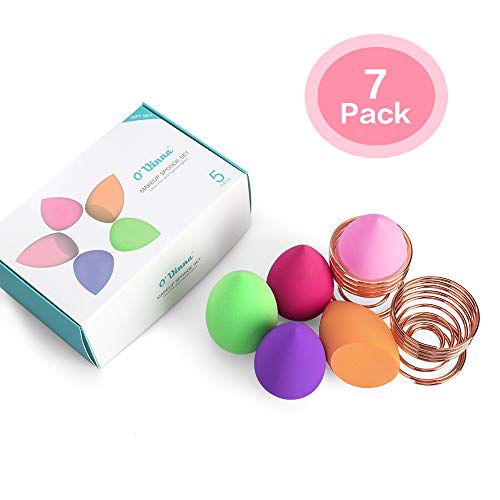 Nuestra siguiente recomendación es un genial pack de 7 piezas. En él, las mejores esponjas para maquillaje del 2025 vienen acompañadas de dos soportes con diseño de espiral. Este par de bases es muy práctico para que puedas colocar las esponjas al irlas turnando para maquillarte o dejarlas después de lavadas para lograr un total secado.