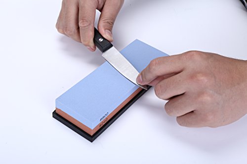 Además, gracias a sus dos superficies, una con grano intermedio 1000 y otra con grano fino de 4000, esta piedra es menos abrasiva, por lo que es capaz de afilar nuestros cuchillos rápidamente y con un acabado profesional, sin generar desgaste excesivo.