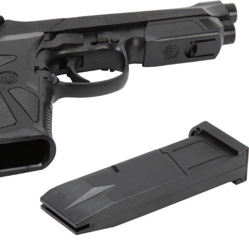 El uso de CO2 le proporciona al balín una velocidad de salida del cañón de 125 metros por segundo, por lo que no debe ser considerado un juguete. También se incluyen dos cargadores de ocho balines para que no tengas que estar vaciando y llenando el cilindro tan seguido.