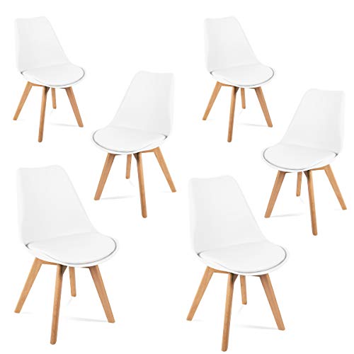 Una de las primeras cosas que debes conocer de esta opción es que se trata de un set compuesto por un total de 6 sillas con las que podrás complementar tu mesa de comedor. Cada una de las sillas tiene un diseño nórdico que las hace simples y elegantes a la vez, permitiendo adaptarlas a cualquier decoración.