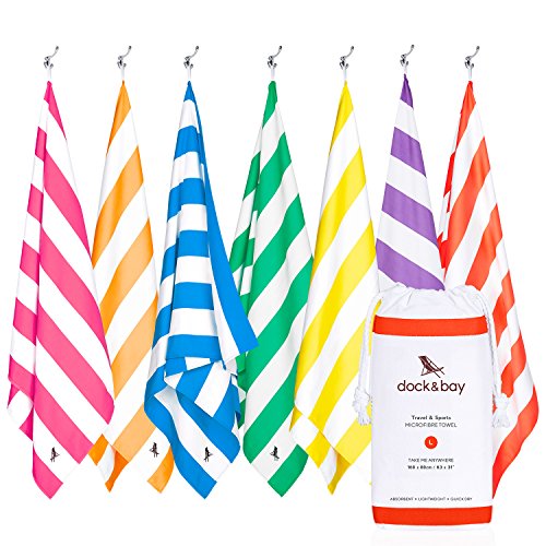Tal como podría ser el caso de las toallas de microfibra de Dock & Bay. Este modelo es sencillo, compuesto por franjas blancas y de colores intercaladas, pero lo más llamativo de todo es que puedes escogerlo en diferentes colores. Entre las opciones disponibles, podrás encontrar amarillo, azul, naranja, violeta, rojo, verde, turquesa, gris, combinados tipo arcoíris y muchas opciones más. Así podrás combinarlo con tu ropa de playa o tu bolso y lucir increíble durante las vacaciones.
