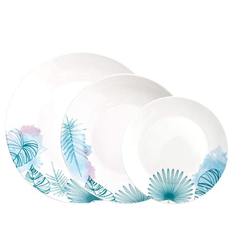 Si te agrada el arte y te preguntas cuál es la mejor vajilla que podrías comprar, te invitamos a conocer más sobre esta propuesta de vajilla Bidasoa, que incluye en su apariencia un bello grabado de estilo acuarela en tonos predominantemente azules con un fondo blanco. Está elaborada en porcelana, por lo que se trata de un set de buena calidad. Además, debes saber que la marca Bidasoa cuenta con una amplia experiencia en la fabricación de artículos de mesa y es para muchos un sinónimo de calidad.