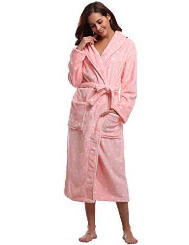 Seguramente te estarás preguntando cuál es el mejor albornoz de microfibra. Si el modelo que buscas es para mujer, este puede responder tu pregunta, ya que cuenta con un diseño atractivo y moderno, que tiene un estampado de estrellas blancas sobre el color rosa pastel de la prenda. Lo mejor de todo es que también hay otros colores disponibles.