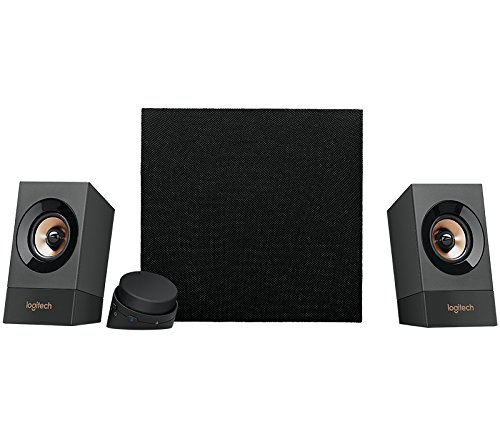 El modelo Z537 de Logitech puede ser muy atractivo para quienes deseen unos altavoces modernos y minimalistas. Se compone por dos altavoces satélite y un subwoofer. Los altavoces destacan por tener detalles en color bronce alrededor de la cúpula y el subwoofer es completamente negro y discreto. Tienen una potencia de 60W RMS pudiendo alcanzar picos de 120W.