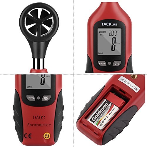 El equipo de TACKLIFE es de uso doméstico con algunas excepciones en el ámbito industrial. Tiene un rango de medición de un mínimo de 1 m/s y un máximo de 25 m/s con una temperatura de entre 0 °C y 50 °C. Con este nivel, el anemómetro puede ser útil en el vuelo de aviones no tripulados como pasatiempo (drones, helicópteros rc, etc.)
