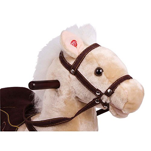 Sonidos: Para el toque divertido de realismo, este caballito emitirá el sonido del relincho y el galope al apretar su oreja. Esto encantará a los niños quienes se entretendrán imitando sonidos mientras se mecen.