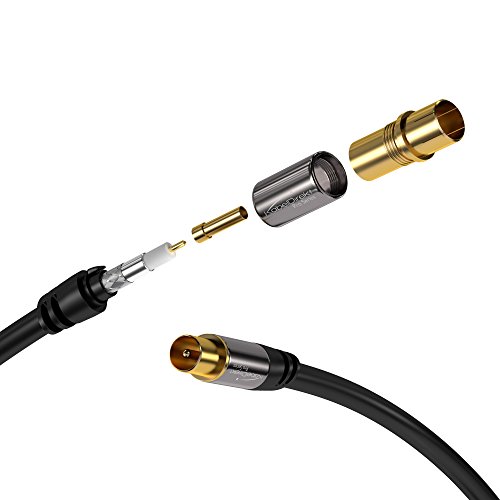 La conocida casa fabricante CSL dispuso para este modelo de cable de antena para TV un largo que dista de 0,5 a 15 metros, con una cubierta cuyo grosor corresponde a 7,5 milímetros, ofreciendo así un adecuado nivel de aislamiento y protección. Asimismo, para el trenzado interior se cuenta con un diámetro bastante robusto con 22 milímetros. Igualmente, tenemos el formato del par de conectores dorados incorporados, que destacan por poseer una medida de 12,25 milímetros.
