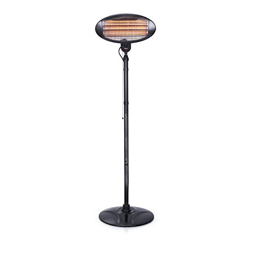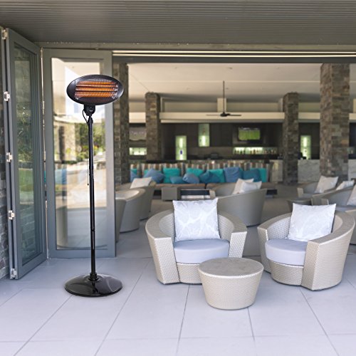 Si te preguntas cuál es el mejor calentador exterior del mercado, puede que sea adecuado que consideres este modelo entre tus opciones. Se trata de un aparato de 18,4 kilogramos, con base amplia para utilizar de pie en ambientes exteriores como patios, jardines o terrazas.