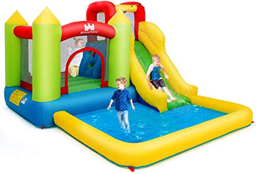 A la hora de comprar un castillo hinchable, también tenemos opciones polivalentes, como el modelo Costway Bouncetech. Este producto es de los más grandes de nuestra selección e incorpora una divertida zona de piscina en la parte frontal, perfecta para refrescarse en verano.