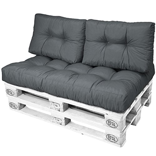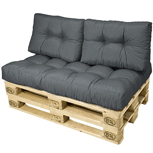¿No sabes aún cuáles son los mejores cojines para palets? Entonces seguramente este modelo será la respuesta a tu pregunta. Hechos de un color gris grafito, estos dos cojines de respaldo son muy cómodos, pues están fabricados con algodón y poliéster de la más alta calidad. La composición es exactamente de 60% de algodón y 40% de poliéster y está avalada por el Oeko-Tex Siegel Standard.