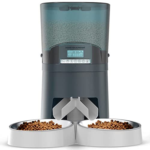 El modelo HoneyGuaridan HG-A68D es otra de las opciones que merece la pena tener entre nuestros comederos automáticos destacados. La principal novedad de este producto es su sistema de doble salida, lo que permite alimentar a varias mascotas a la vez.