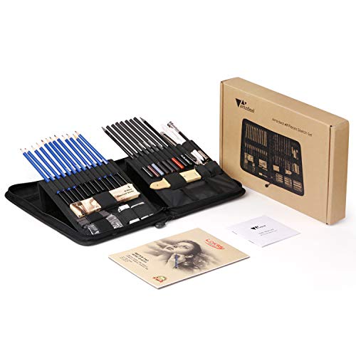 Expresar tu creatividad será más sencillo si cuentas con este modelo, el cual es el mejor estuche de dibujo del momento, ya que es un set muy completo que incluye varias herramientas, entre ellas, 12 lápices de dibujo, 3 de carbón, 3 palos de grafito, lápices de grafito 6B, entre otros.