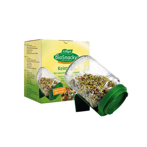 El A.Vogel BioSnacky Keimglas está diseñado con un envase de cristal, a través del cual podrás ver los avances de la germinación. Además, este hecho ayuda a que les entre suficiente luz a las semillas.